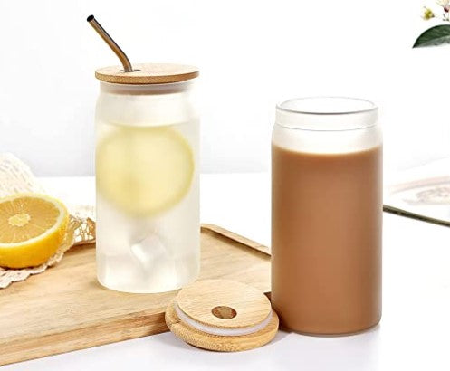 3. Size – The glass jar tumbler cup is straight and holds 16 fluid oz.